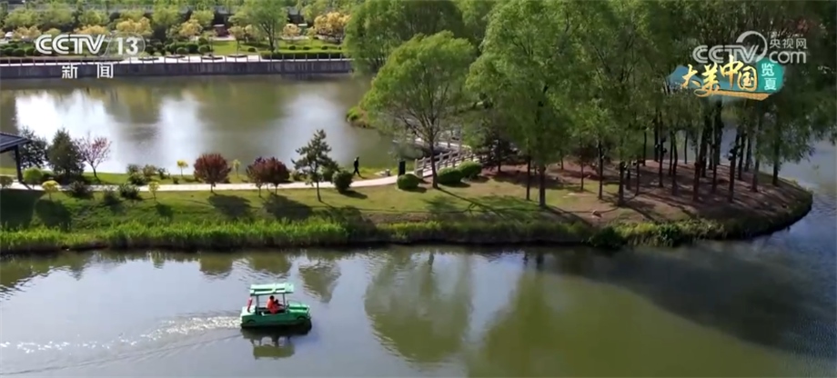 這里是汾河山西太原城區(qū)段,碧波蕩漾、草木并秀。多座橋梁飛跨兩岸,濱河自行車道如彩帶般掩映在綠樹繁花之中,不少市民在這里漫步騎行,感受汾河兩岸的夏日氣息。