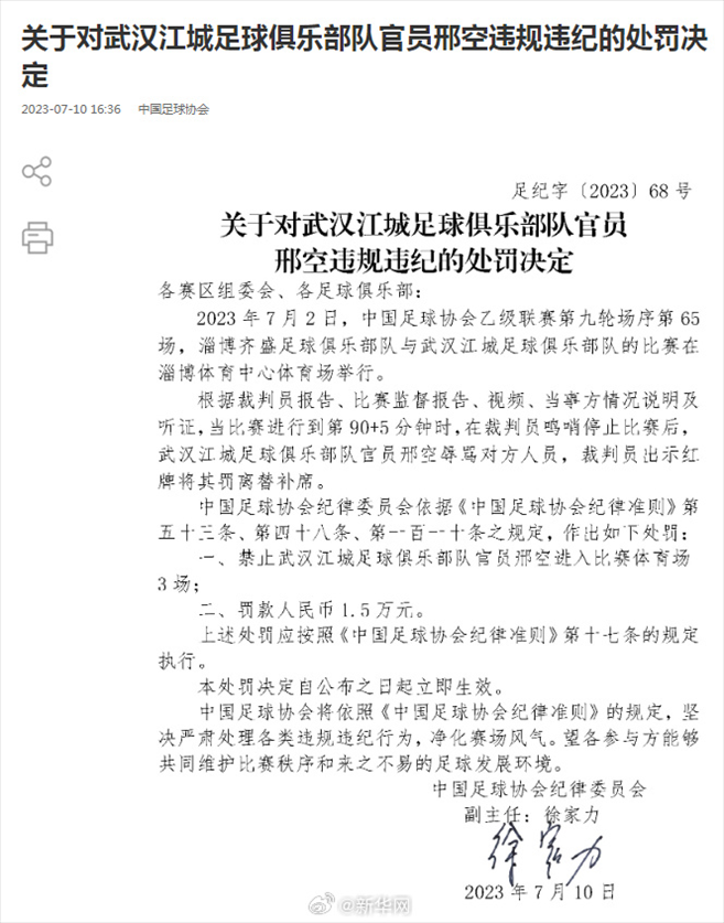 ·中國足協(xié)再開罰單,兩名俱樂部官員因違規(guī)違紀(jì)被罰。