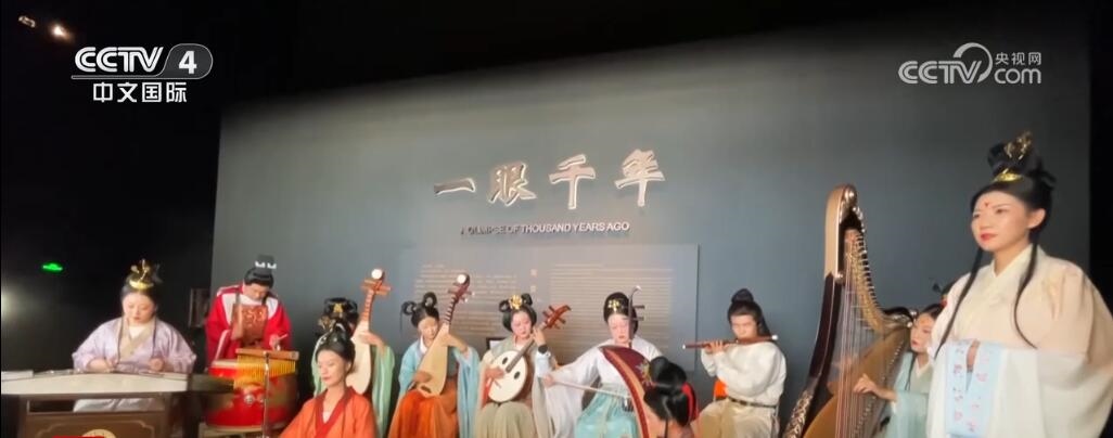 在山西太原北齊壁畫博物館,一場“文物”和“音樂”、“傳承”和“創(chuàng)新”的音樂會(huì)正在上演。樂師用古琴、琵琶、箜篌、笛子等民族樂器演繹出了《一眼千年·夢(mèng)回北齊》,將北齊時(shí)期武安王徐顯秀墓室中的《夫婦宴飲圖》壁畫中的樂隊(duì)場景完美呈現(xiàn)。而在互動(dòng)體驗(yàn)區(qū),觀眾撥動(dòng)電子屏上的琴弦,就可以和投影墻上的樂伎共彈一曲。