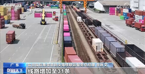 鹽田國際集裝箱碼頭海鐵聯(lián)運(yùn)服務(wù)總經(jīng)理余秋文介紹:“截至今年4月份,我們共開通了14個(gè)海鐵聯(lián)運(yùn)內(nèi)陸港,線路增加至31條,覆蓋了大灣區(qū)、華中、西南等重要的經(jīng)濟(jì)區(qū)域?!?/p>