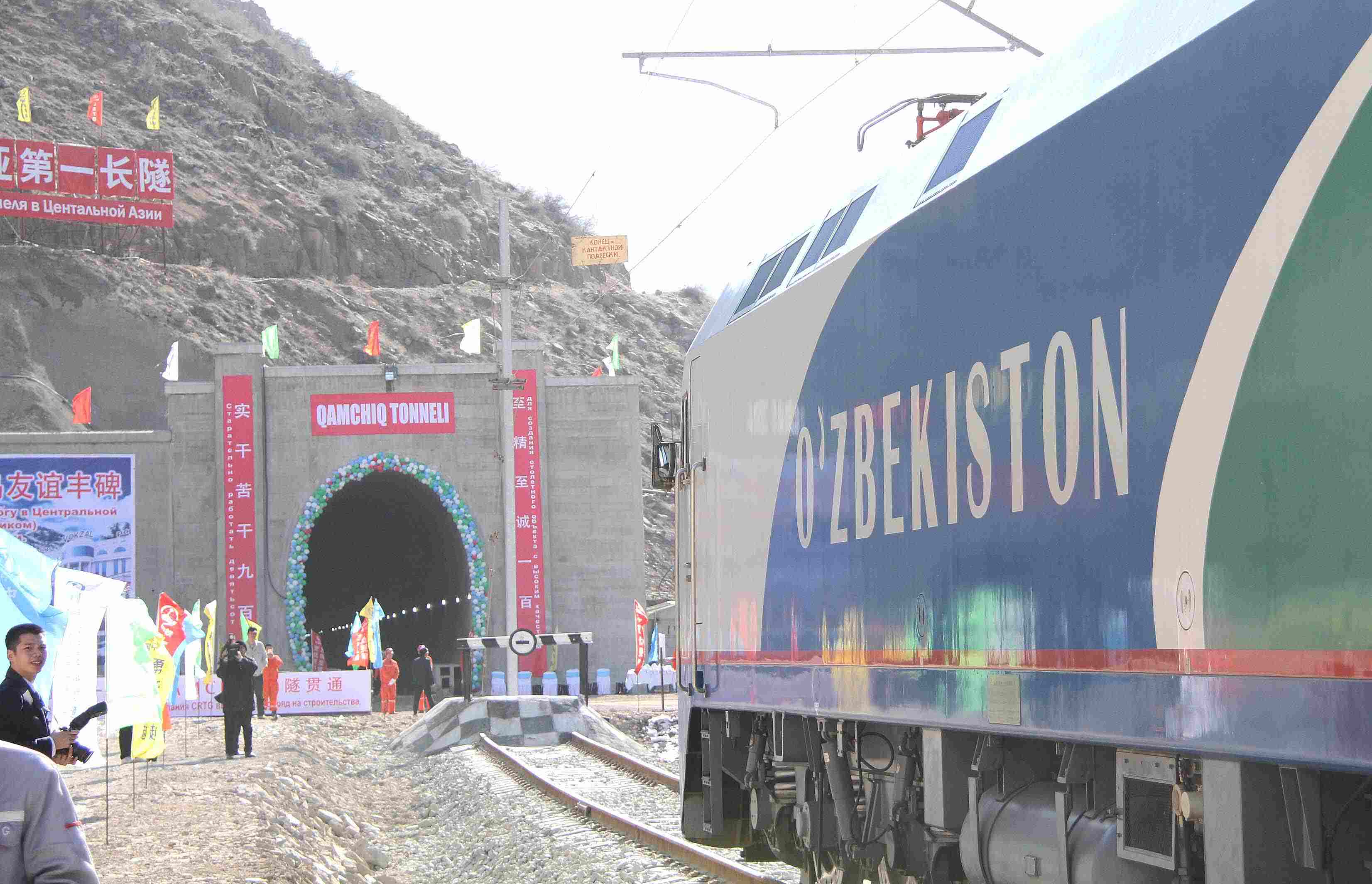 △ 2016年2月27日,一列專(zhuān)列停在烏茲別克斯坦安格連至琶布鐵路甘姆奇克隧道進(jìn)口。甘姆奇克隧道是中吉烏鐵路的重要一環(huán),對(duì)促進(jìn)烏茲別克斯坦經(jīng)濟(jì)社會(huì)發(fā)展和共建“一帶一路”倡議的實(shí)施具有重大意義。