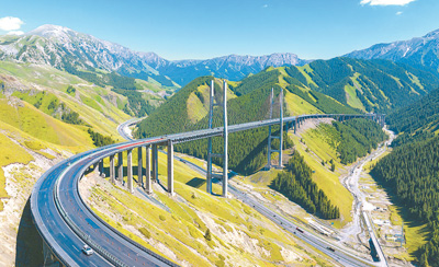 新疆伊犁果子溝大橋遠眺。
