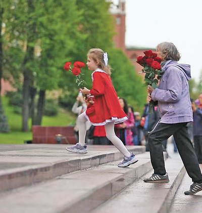 俄羅斯民眾向莫斯科無名烈士墓獻花。