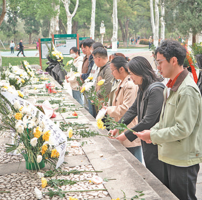 4月4日清明節(jié),湖北武漢江漢大學的師生自發(fā)前往武漢市解放公園,緬懷為阻擊日寇而英勇犧牲的蘇聯(lián)援華航空隊烈士。