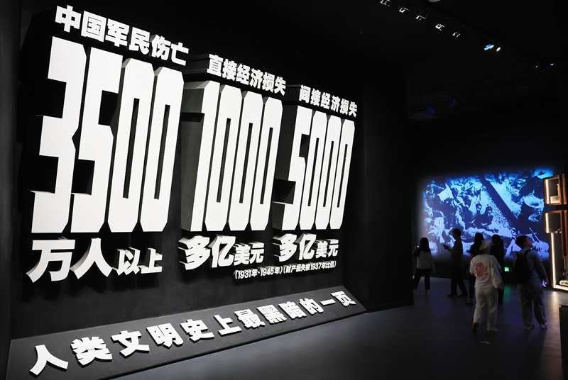 7月8日,在中國人民抗日戰(zhàn)爭紀(jì)念館《為了民族解放與世界和平》主題展覽上,參觀者在展示日本侵略者實施細(xì)菌戰(zhàn)和化學(xué)戰(zhàn)暴行的區(qū)域參觀。