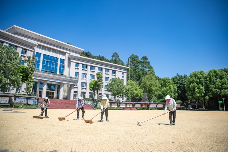 8月20日,人們?cè)谥貞c市永川區(qū)紅爐鎮(zhèn)政府廣場上晾曬糧食。
