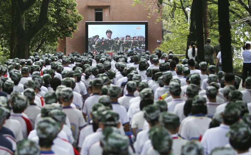 9月3日,廣東省鶴山市第一中學(xué)的師生在觀看紀(jì)念中國人民抗日戰(zhàn)爭暨世界反法西斯戰(zhàn)爭勝利80周年大會直播。