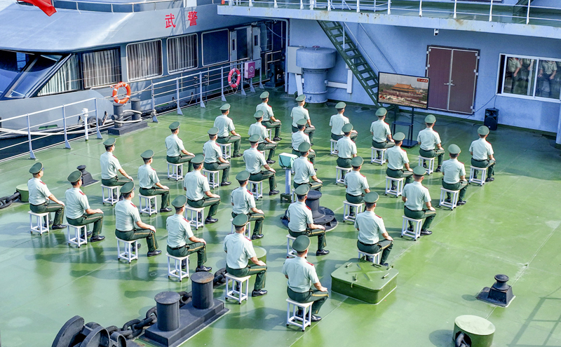 9月3日,武警江蘇總隊南京支隊船艇大隊官兵觀看紀(jì)念中國人民抗日戰(zhàn)爭暨世界反法西斯戰(zhàn)爭勝利80周年大會直播。