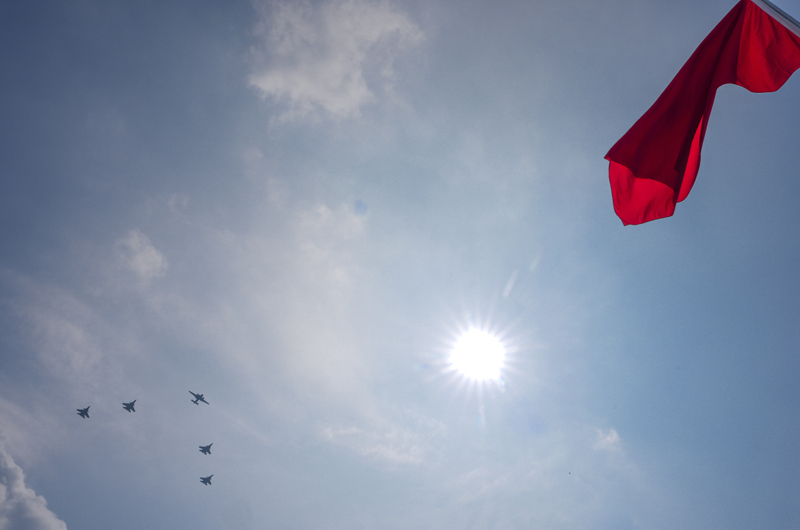 9月3日,紀念中國人民抗日戰(zhàn)爭暨世界反法西斯戰(zhàn)爭勝利80周年大會在北京隆重舉行。這是空中護旗梯隊通過天安門廣場。