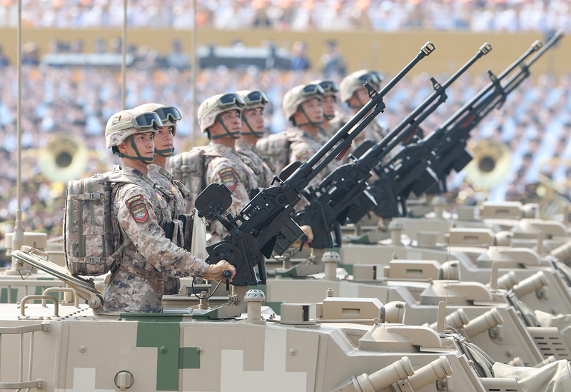 9月3日,紀念中國人民抗日戰(zhàn)爭暨世界反法西斯戰(zhàn)爭勝利80周年大會在北京隆重舉行。這是網(wǎng)絡空間作戰(zhàn)方隊接受檢閱。