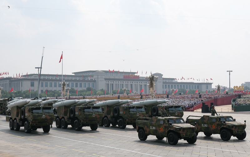 9月3日,紀念中國人民抗日戰(zhàn)爭暨世界反法西斯戰(zhàn)爭勝利80周年大會在北京隆重舉行。這是火箭軍方隊通過天安門廣場。