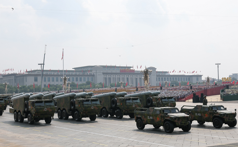 9月3日,紀念中國人民抗日戰(zhàn)爭暨世界反法西斯戰(zhàn)爭勝利80周年大會在北京隆重舉行。這是高超聲速導彈方隊接受檢閱。