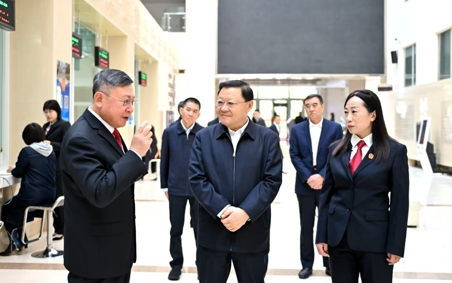 在自治區(qū)高級(jí)人民法院,王偉中先后來(lái)到訴訟服務(wù)大廳、融合法庭,了解多元化解矛盾糾紛、智能輔助審判等情況。他指出,要完善司法為民舉措,提升民商事案件審判水平,確保每一起案件都經(jīng)得起歷史、實(shí)踐和人民的檢驗(yàn)。要緊盯發(fā)展新質(zhì)生產(chǎn)力、優(yōu)化營(yíng)商環(huán)境等領(lǐng)域,持續(xù)強(qiáng)化司法服務(wù),更好發(fā)揮法治固根本、穩(wěn)預(yù)期、利長(zhǎng)遠(yuǎn)作用?! ?/p>
