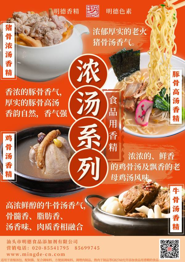 更有豬骨香精、豚骨香精、雞骨湯香精、牛骨湯香精等,任君選擇。